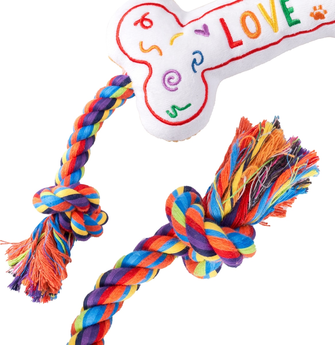 PAWTY TOYS Love Bone with Tug Rope Plush Dog Toy