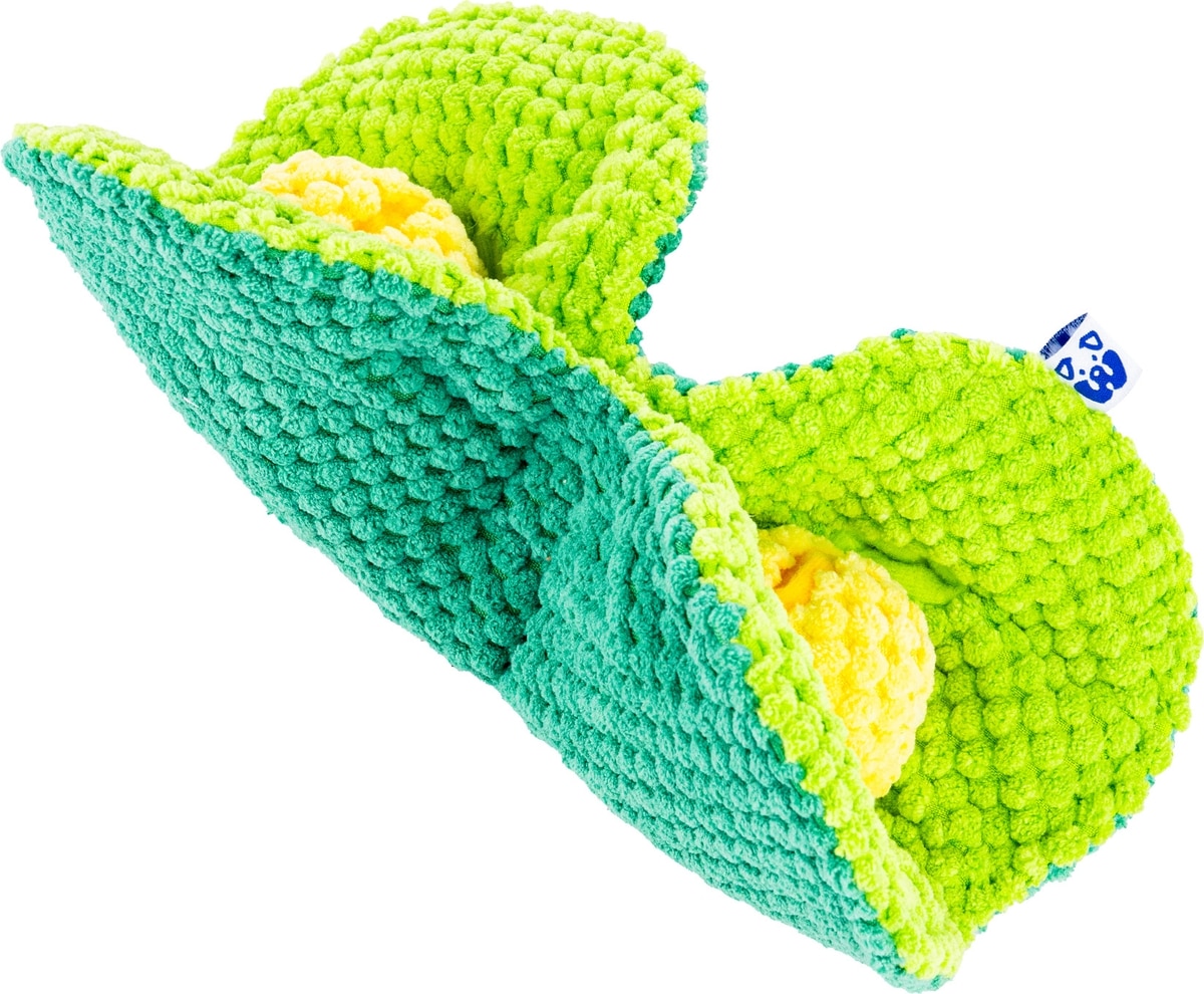 PAWTY TOYS Pea Pod Snuffle Treat Slot Squeaky Plush Dog Toy with Detachable Balls