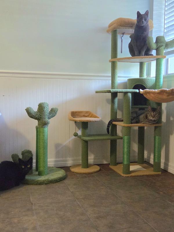 - Features 3 scratching poles covered in natural sisal and a soft carpet base for your cat’s scratching needs.
