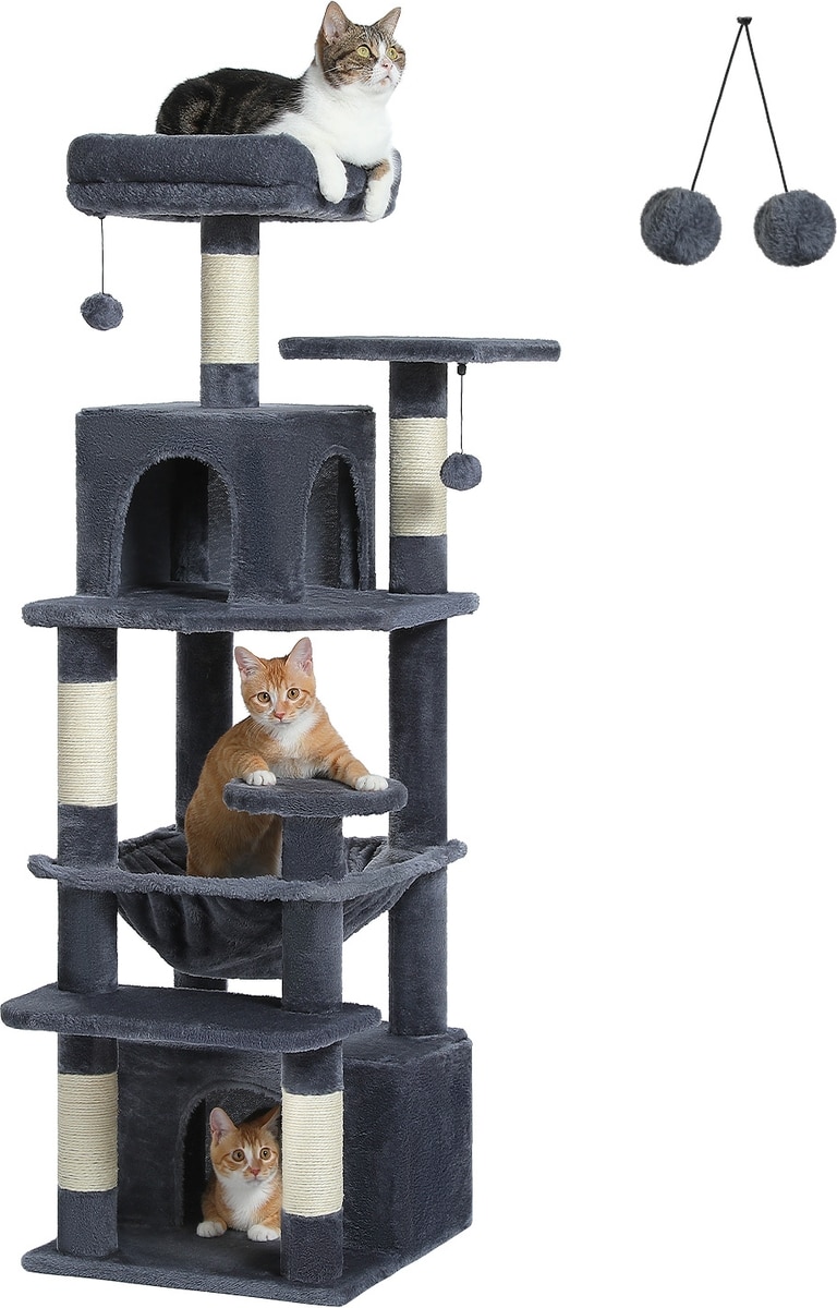 The cat tree includes 5 reinforced posts wrapped with 100% natural sisal, providing multiple scratching surfaces for cats to sharpen their nails and enjoy endless fun, while protecting your furniture from damage.