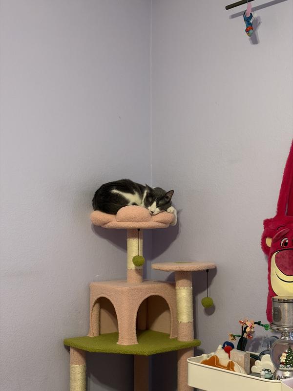 The tree features a sturdy thick base, solid particle board for durability, and 5 reinforced sisal-wrapped posts for safe scratching, keeping cats entertained while protecting your furniture.