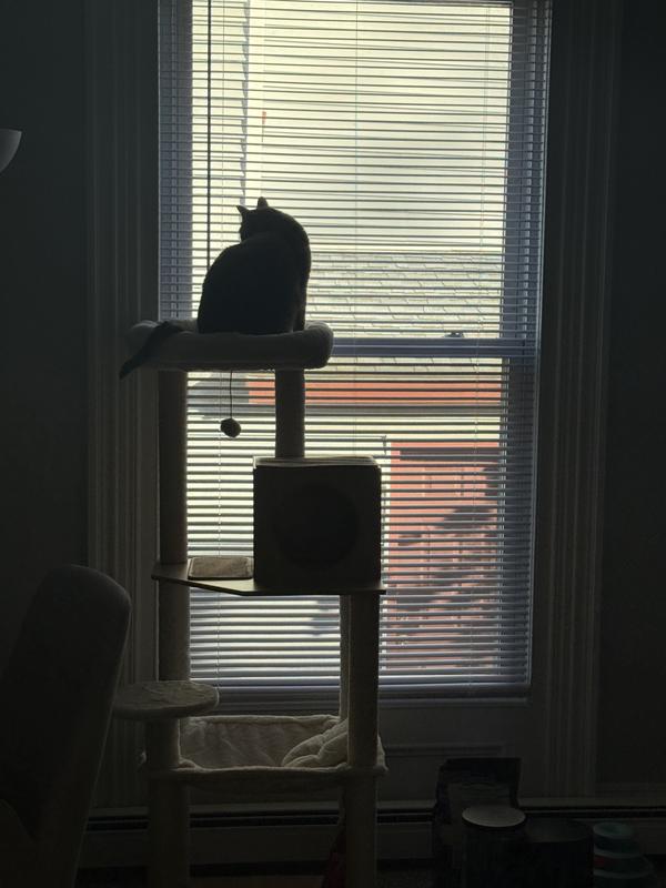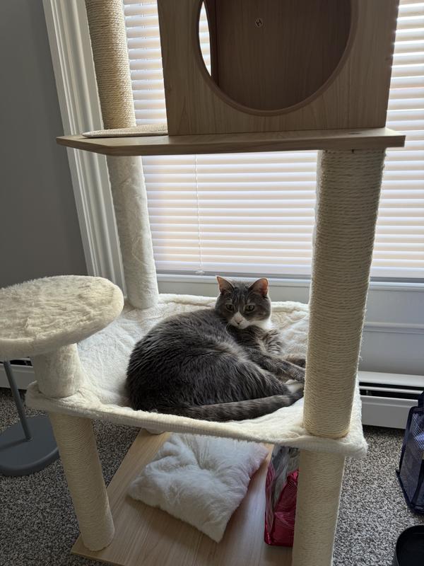 I analyzed cat trees for weeks before finally landing on this one! Love the wood mixed with soft fabric (not carpet!), the huge hammock big enough for two kitties