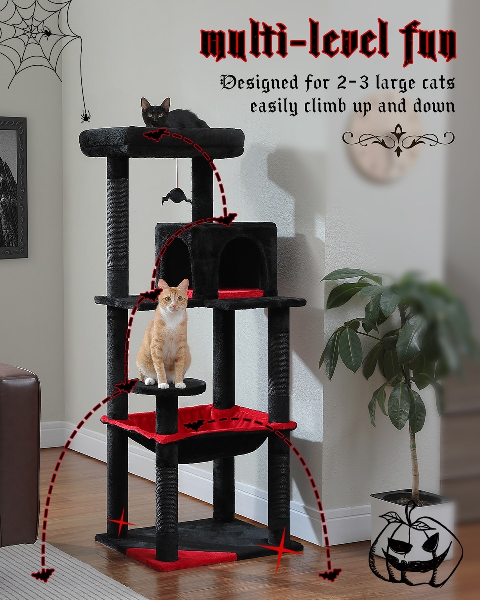 PAWZ Road 56.3-in Large Hammock Polyester Cat Tree & Condo, Large, Black