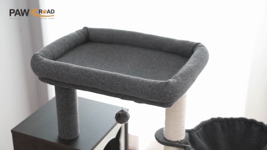 PAWZ Road 56.7-in Polyester Wood Cat Tree Tower with Litter Box Enclosure & 2 Condos, Large, Beige