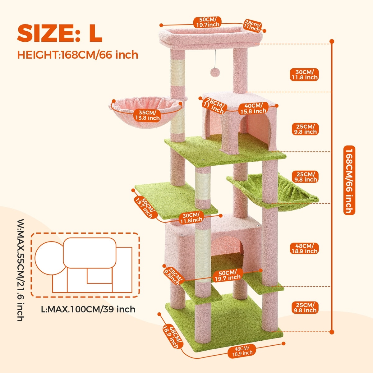 PAWZ Road 66-in Multi-Level Polyester Cat Tree & Condo, Large, Pink