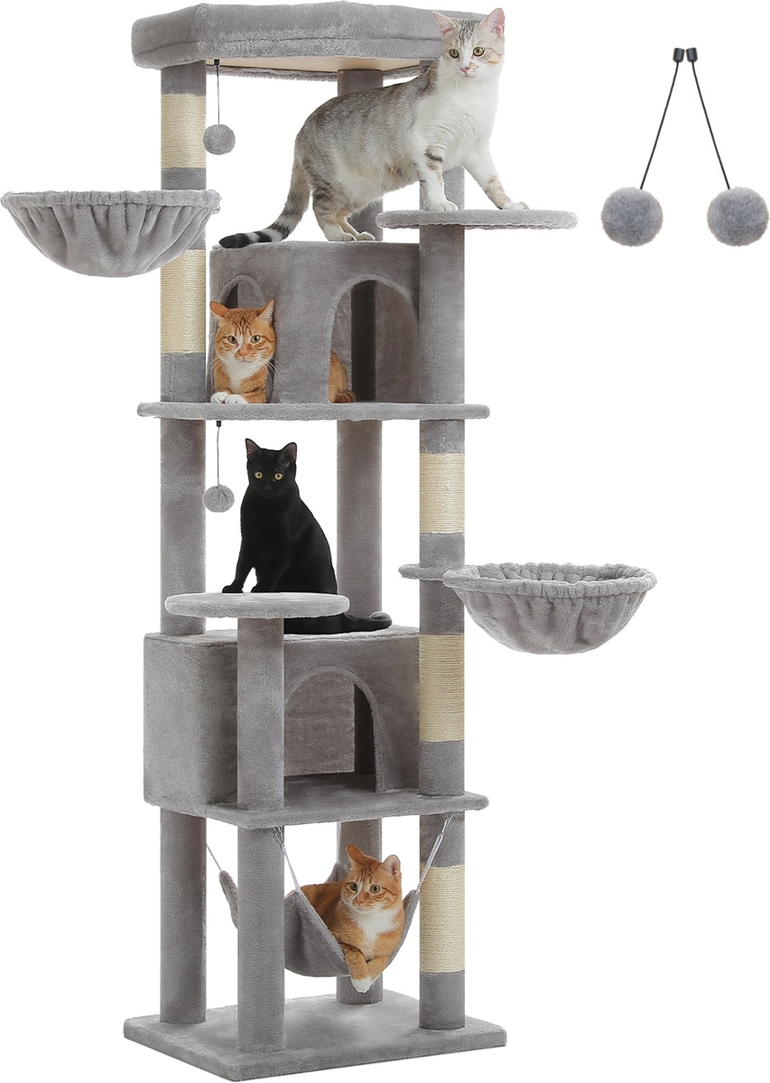 With a sleek 71.3-inch height and a compact footprint, this cat tower maximizes vertical space, providing a full climbing and lounging experience without taking up much floor area.