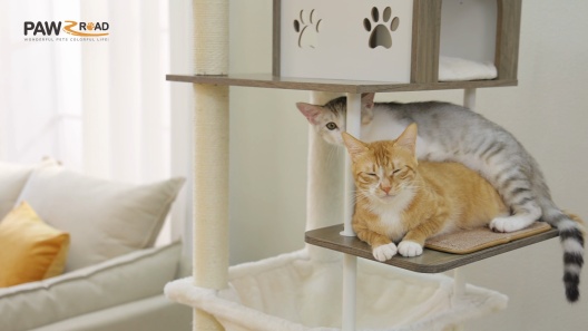 PAWZ Road 75-in Tall Polyester Cat Tree & 2 Condos with Food Station & Large Hammock, Beige