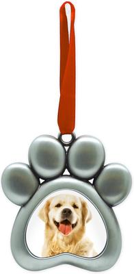 - Pawprint-shaped ornament includes a 1.5 x 1.5 inch photo insert.