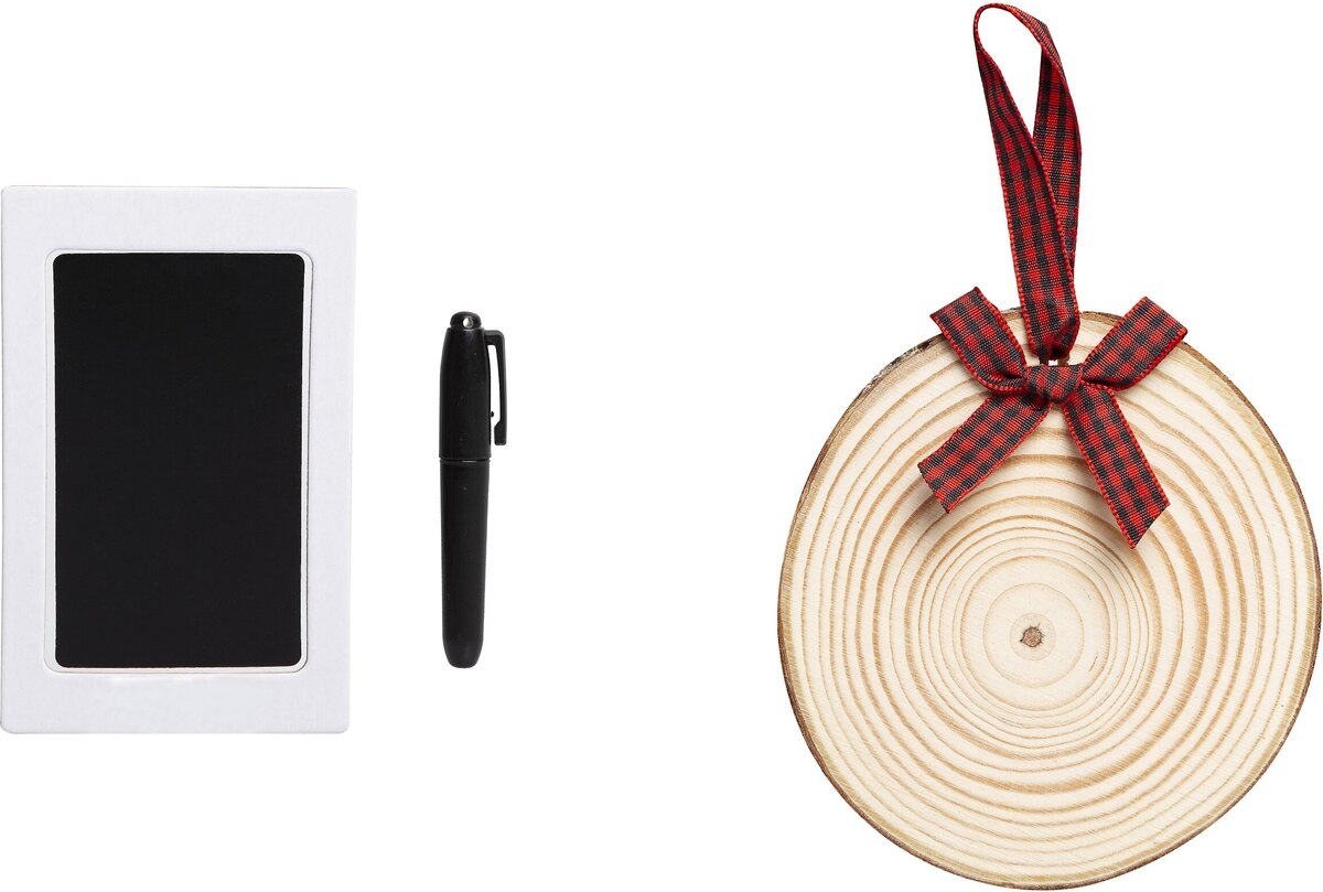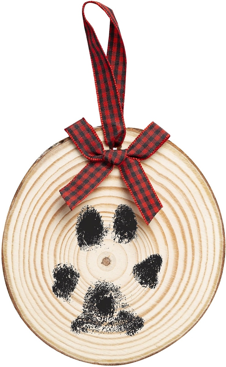 - Celebrate your pet’s first Christmas by using the red and black plaid ribbon to hang this ornament on your tree.