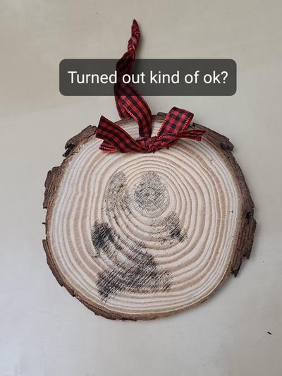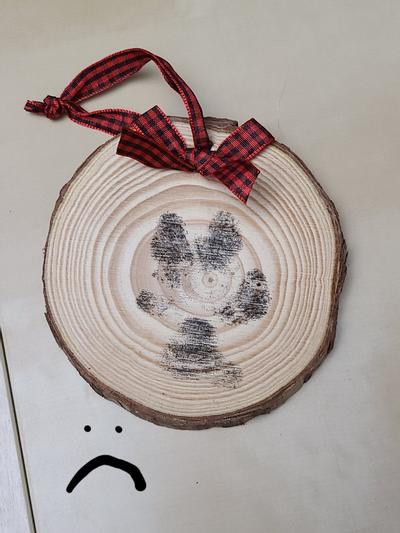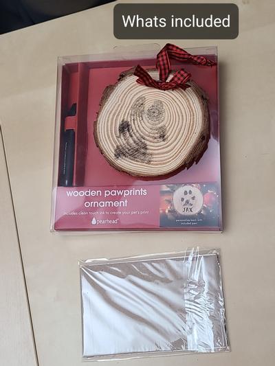 Total waste of money unless your dog has very small paws. The ink pad is too little. It was only big enough to fit my boxers toes on the ink pad. The ornament itself