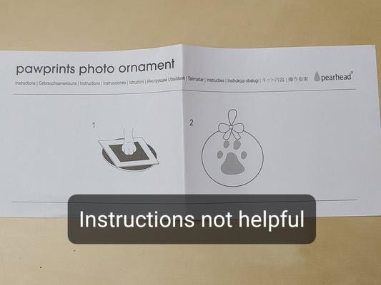 I ordered two kits, one for my parents as Xmas gift & one for myself. The ink pad is too narrow for large paws (2.5" wide) my 95 lb dogs paw barely fit with me squishing his toes together. The ornament is a large 4" diameter & nice quality. The instructions were useless, I had to look up YouTube tutorials to make sure I was about to do it right. You get 1 try so make sure you get it right. My dog is very well-behaved so I knew he would cooperate but if your dog doesn't cooperate or hold still, I recommend using a post-it note pad to practice with your pup so they know what to expect. Just pressing the paw on the paper pad without ink & reward with treat if pup cooperates. I had to press on my dogs paw pretty hard to get the paw print to show up. One print turned out ok I guess but I'm not happy with the 2nd ornaments print. Tried to re-do the 2nd ornament by pressing his paw exactly over the same spot on the ink pad & ornament but it didn't turn out any darker or any clearer. Couldn't get a nice, dark, clear print like what's shown in the ad, no matter how hard on the paw I pressed. Not sure if I recommend this product as it's very finicky, you really have to have a cooperative dog, you get one chance to get it right, you have to press very hard on the ink pad to get a decent print, ink pad is too narrow. It is a nice quality kit overall though. You also get a marker so you can write your dogs name on the ornament or the date. Keep the packaging so you can store the ornament in it & protect it until next xmas. I really hope this honest review has been helpful. See photos for reference.