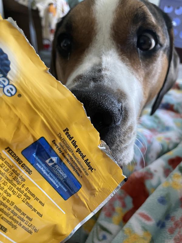 Treat your dog to the whole range of satisfyingly tasty Pedigree treats. Pedigree treats serve up a delicious mix of flavors and textures that are guaranteed to have your dog drooling with delight. Choose from a variety of real meat or poultry-flavored options tailored to suit every taste.