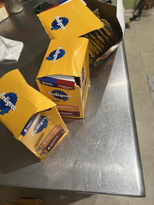 - Pedigree Choice Cuts in Gravy Variety Pack Adult Wet Dog Food, 3.5-oz pouch, case of 30$25.97 Chewy Price$26.99 List Price$24.67 Autoship PricePromo, New Customers Only: Spend $49+, Get $20 eGift Card