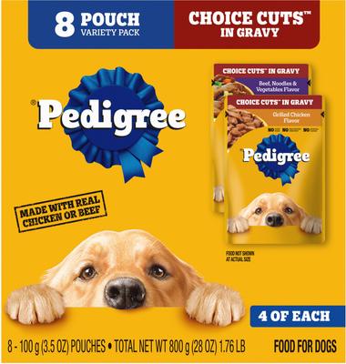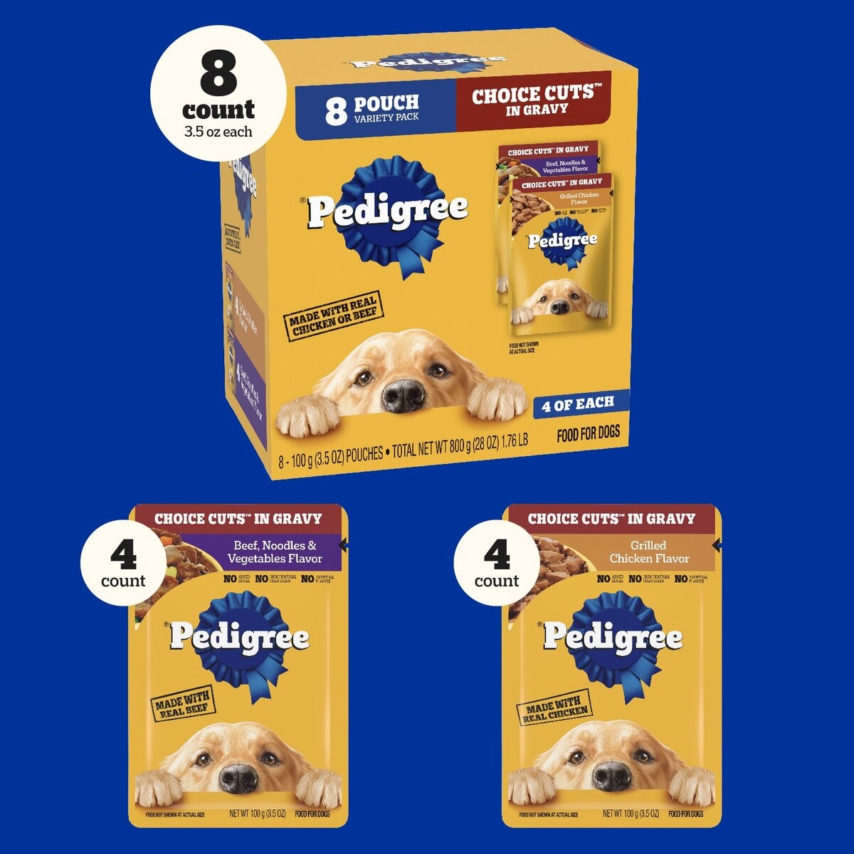 Pedigree Choice Cuts Variety Pack Beef & Chicken Adult Wet Dog Food, 3.5-oz pouch, case of 8