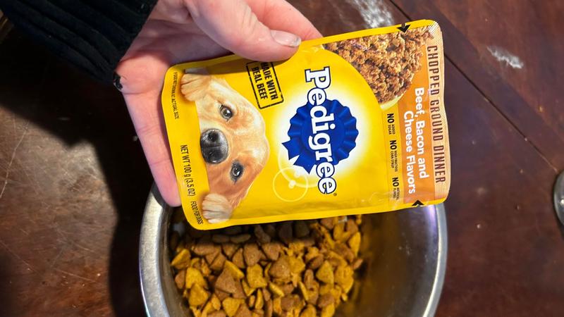 - Pedigree Chopped Ground Dinner Variety Pack Featuring Bacon Adult Wet Dog Food, 3.5-oz pouch, case of 8$7.99 Chewy Price$7.59 Autoship PricePromo, New Customers Only: Spend $49+, Get $20 eGift Card