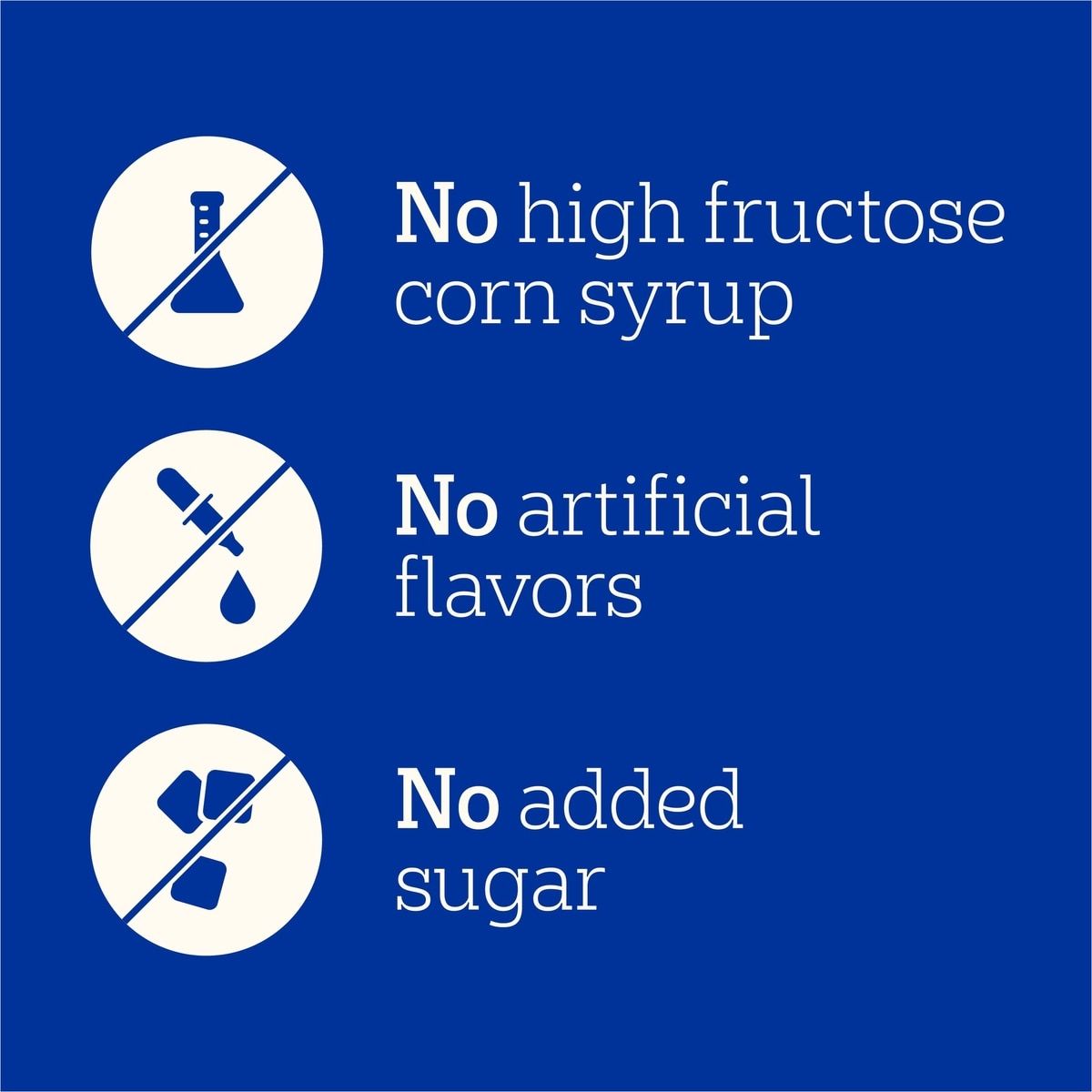 - Formulated without high fructose corn syrup, added sugars, artificial flavors, or artificial preservatives.