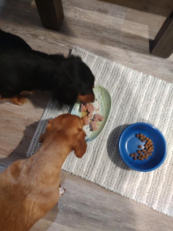 My frenchie absolutely loves these! I split the beef flavor serving across his two meals and he gobbles it up. He even continues going back to lick the bowl to