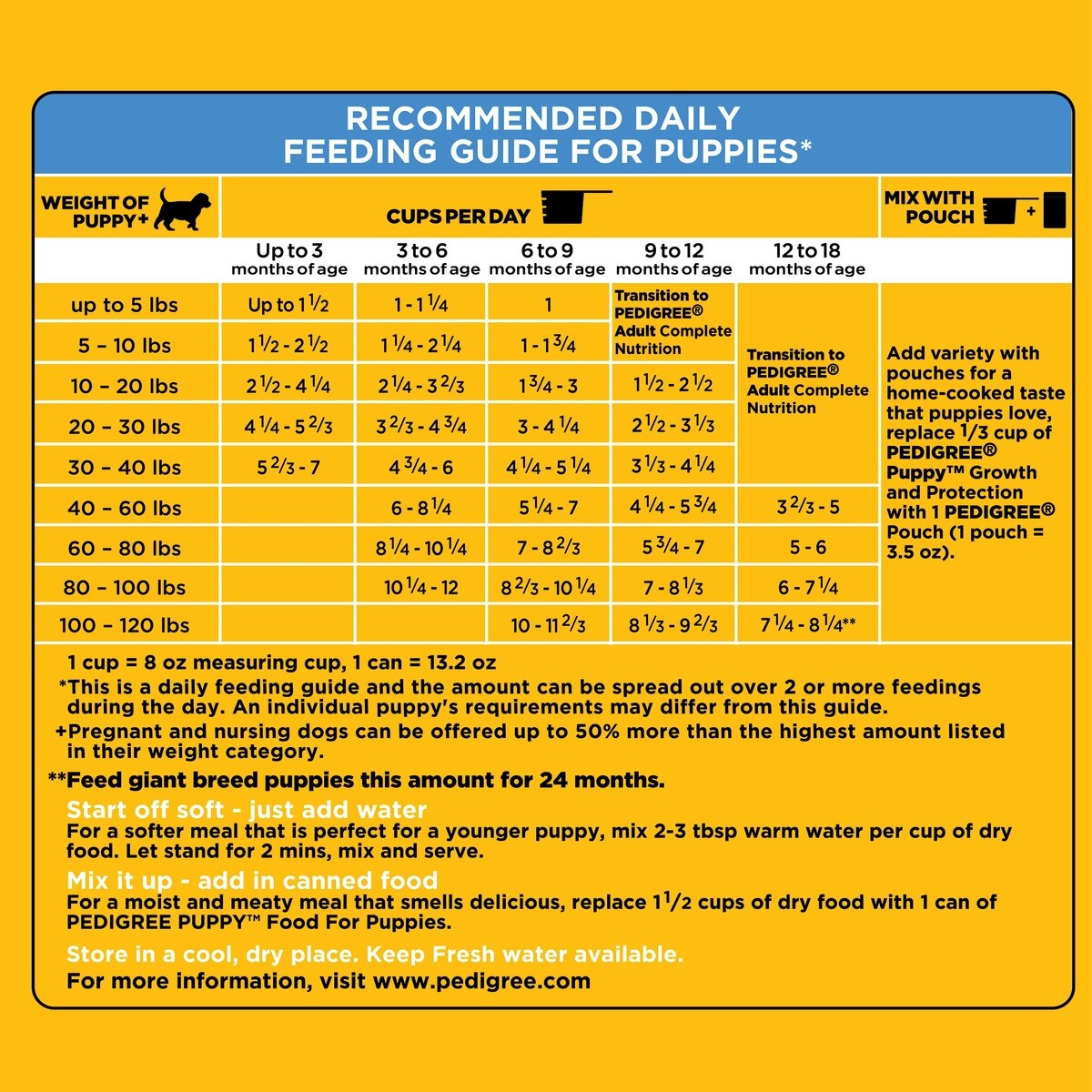 Growing puppies need specialized nutrition. Packed with key nutrients similar to mother's milk, Pedigree dry puppy food provides 100% complete and balanced nutrition for puppies. It’s a great way to ensure your puppy is getting all the nutrients he needs to grow into a healthy dog.