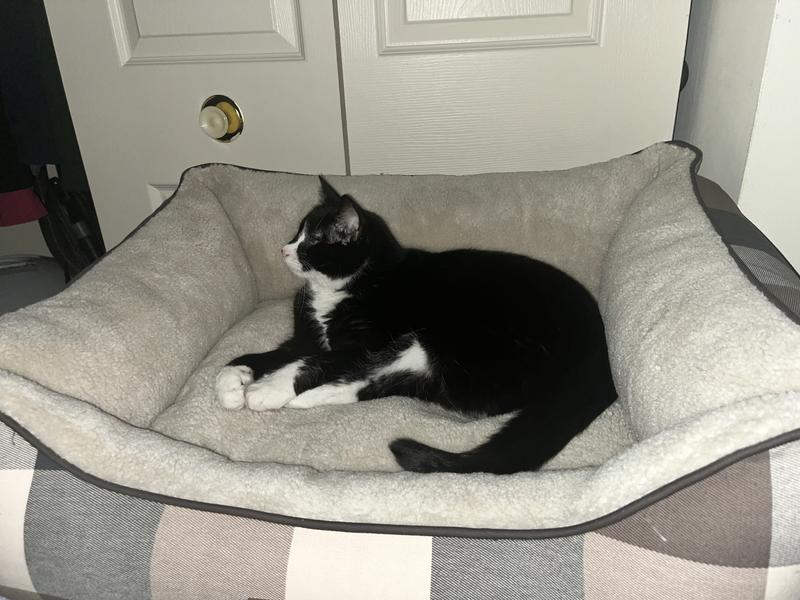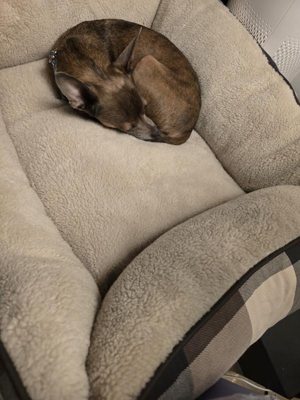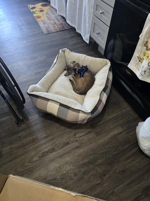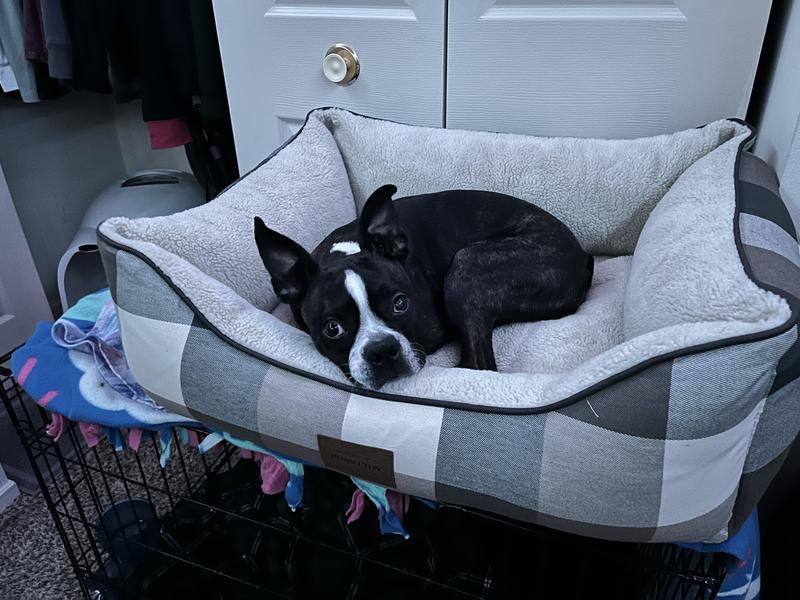 The second I put this bed down my dog showed interest, and even with it in a weird location on top of being new he took to it straight away. He likes to dig at his favorite surfaces and this is getting the treatment! The siza medium looks a bit big for him, but if he brings a blankie or has to switch spots the size makes more sense.