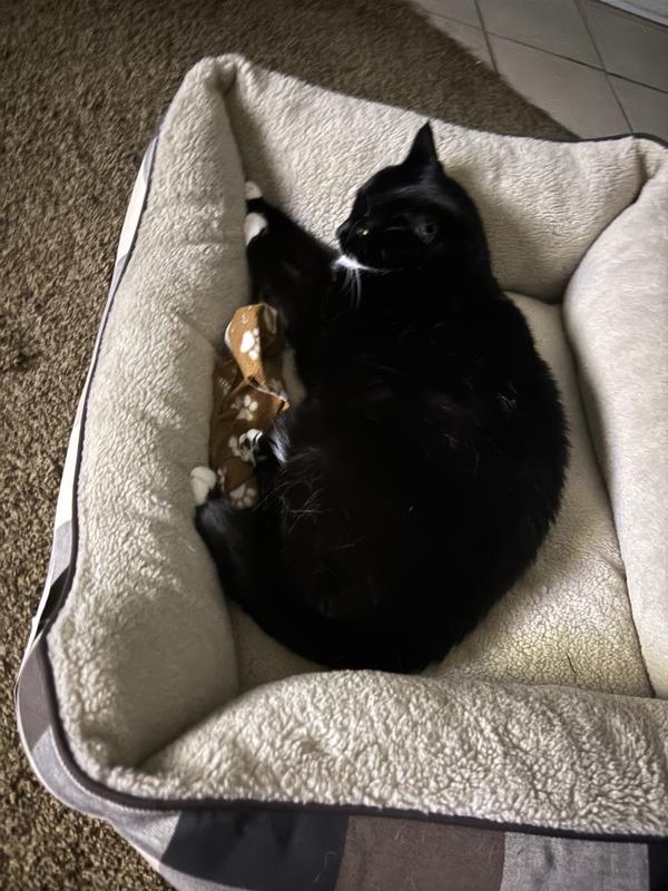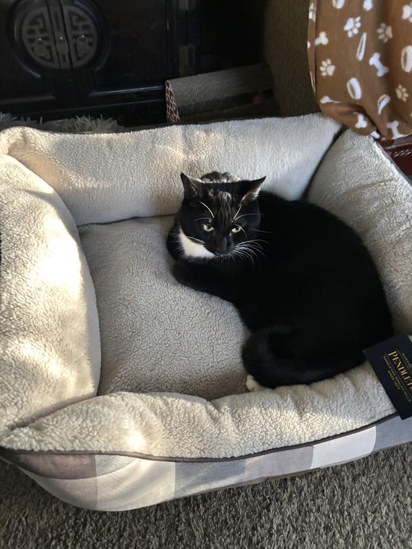 Both the cats and dogs instantly took to this bed! It's very soft and nice to the touch. The structure is nice and the sides don't fall down like other soft pet beds. I think the cats enjoy it so much because it keeps its shape and the sides are a perfect height for them. It was bigger than we expected which is nice as both dogs can fit in it if they'll share (same goes for cats)
