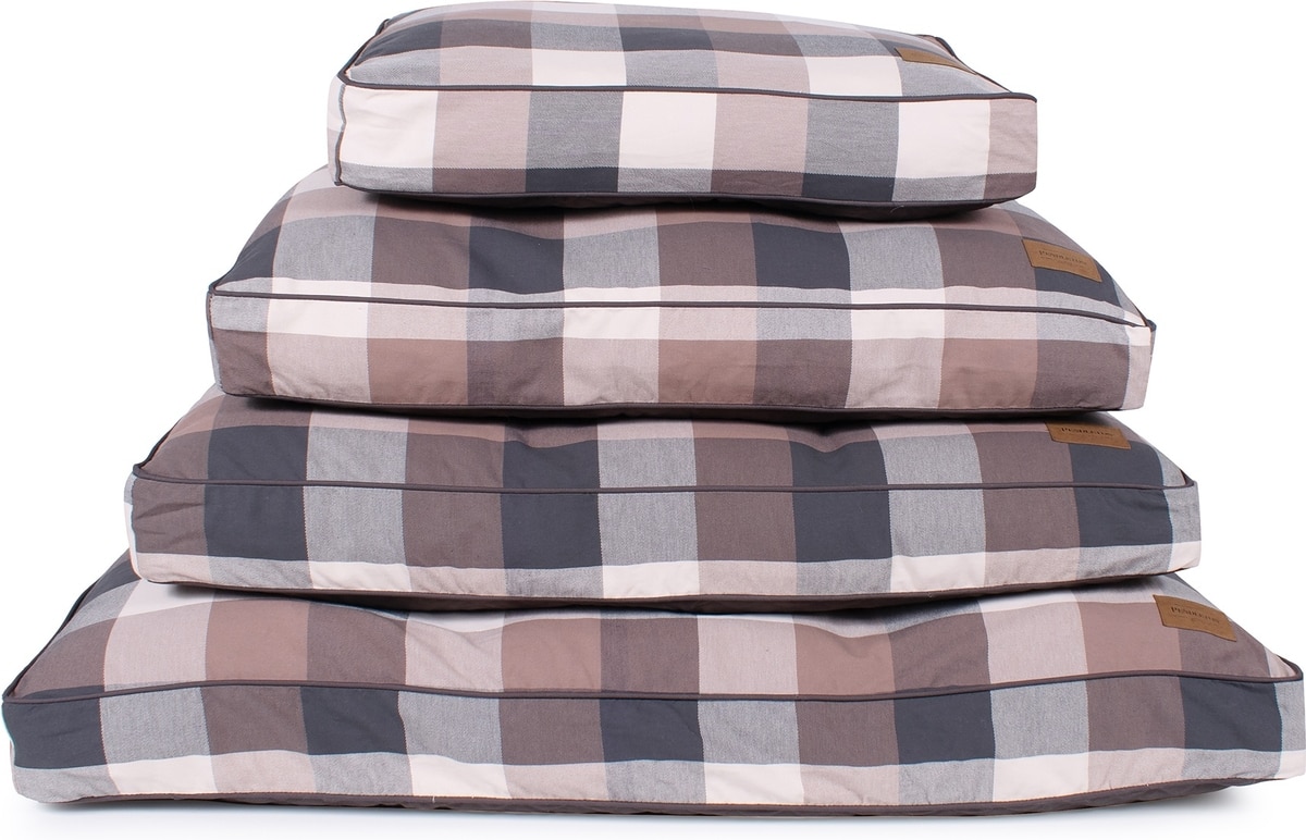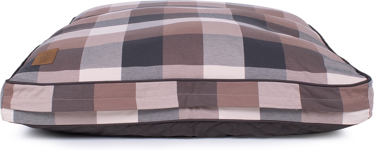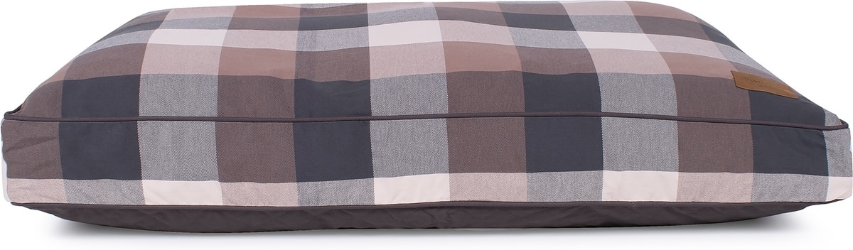 - This dog bed features a classic black and tan plaid design for pet parents who love plaid.