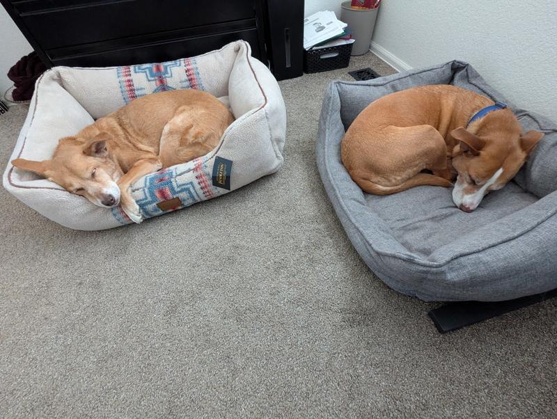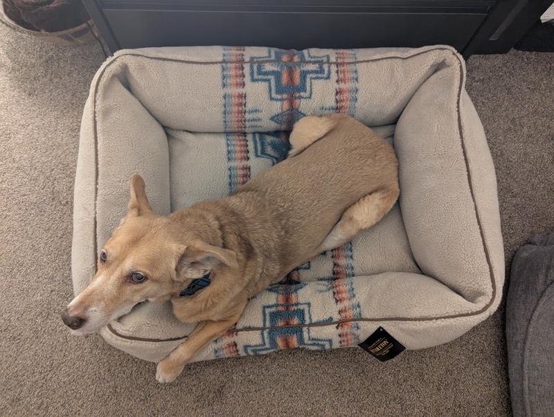 This bed is a pup favorite in our house. With four dogs who alternate between full speed and full stop, we have a LOT of dog beds in our house. But this one causes arguments. Someone will be napping, just snoring away in blissful slumber, and then someone else will come along and decide it's their turn for the comfy bed. What ensues is entertaining and hilarious every time. This bed is soft and cushy, supportive, and looks nice in our living room. I haven't had to wash it yet so I don't know how well it will stand up to the washer, but it seems durable. However, it is crazy expensive compared to other similar beds, so one star off.