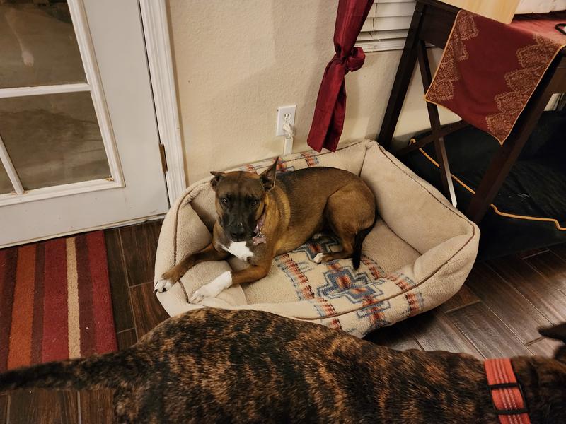 This bed is a pup favorite in our house. With four dogs who alternate between full speed and full stop, we have a LOT of dog beds in our house. But this one causes