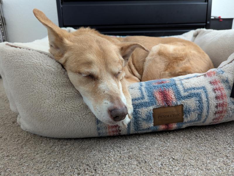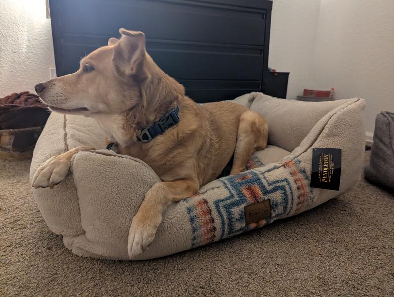 Pendleton delights customers! This bed is the best dog bed I've ever gotten! 36x27, it's perfect for my German Shepherd! He was on it immediately and most of the time sleeps with his long shepherd muzzle buried deep in the corner. The pocket between the bottom cushion and the bolsters goes down deep like between the seat and back of a human's couch. The bolsters are strong! They don't slouch, but really act as pillows--all the way around. And, the cushion across the bottom is just as strong. There is piping all around the top of the bolsters, which I never noticed in the picture, which strengthens the seams, again like a human couch. This is a firm bed, built to last. This bed boasts that the cover can be removed and washed. We've all heard that before. It's been here about a month and I've had reason to test that claim--not the shepherd's fault--so I delayed my review til after the washing. The craftmanship in this bed is shown in every way to live up to the washability promise! The Pendleton designer thought of everything. I could feel a zipper down deep in the pocket which is never felt by the pet. It goes all around the bottom cushion. So I thought --oh, just the bottom cushion cover comes out. No! that zipper went all the way around the cushion and unzipped SMOOTHLY, releasing the four bolsters. I recommend laying them out, diagram-style, as you remove them, for ease in putting them back in the right order later. In pulling them out, I held the bed up and noticed a long zipper across the bottom. That's how the bed bottom cushion is released. Both zippers were better than the zippers in any jacket I've ever had! I washed the cover only, in cold water and dried no heat. There was no shrinking at all! Just to be even more impressive, each of the four bolsters were also in zippered covers, but I would never wash the wonderful, strong stuffing--so while it was all apart I covered the 4 bolsters and the bottom cushion in trash bags. This had a few advantages. It protects them from any future spills on the cover. It protected me from the complication of getting a zipper caught in the bolster as I stuffed the bolsters back in their places. And the trash bags are slippery enough to make the bolsters and the bed cushion slide in more easily because of course these pieces fit tightly. It took a little time, but not bad and I am proud to say that when I put it all back together it looked like it just came out of the box! One other word. When I laid the "empty" bed out in the floor, getting ready to put everything back together, my dog kept lying down on it. I had to get him off 3 times. He had really missed his bed for the two nights he didn't have it. Oh, and IT LOOKS GOOD, TOO!