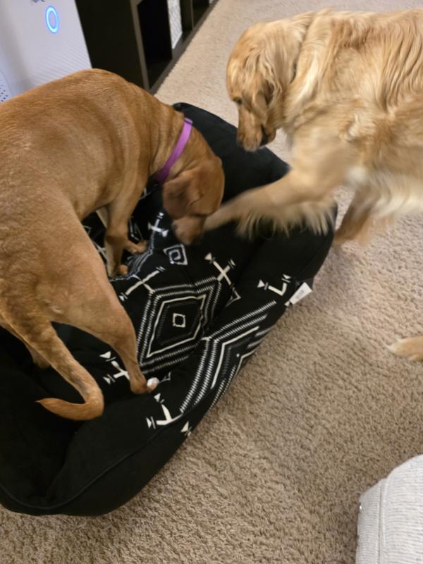 All three pups have found some time in their new bed! One of them actually likes it to much that she even climbs up on the chair when its moved out of the way for the vacuum. 🤣 In all seriousness, the bed seems to be well built and has lots of foam support to endure bigger dogs over time. The ONLY downside, which is really not the fault of the bed, is that it is a hair magnet. But, what isn't when it comes to dog hair?!