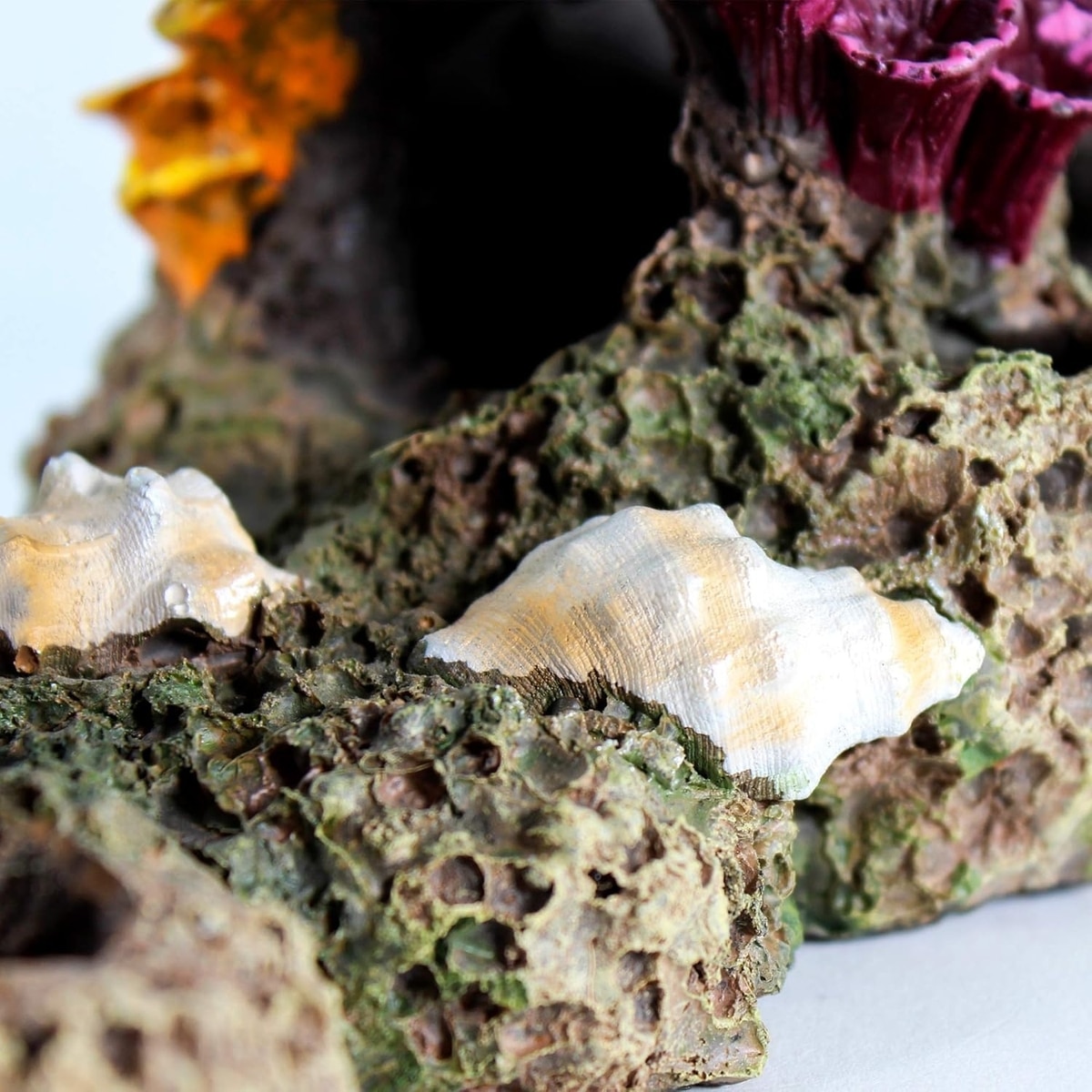 The decoration looks amazing in my turtle tank. Although when it arrived and I pulled it out of the box there was a piece broken off. It was from the inside, so it didn’t effect the looks of it at all. That’s why only 4 stars.