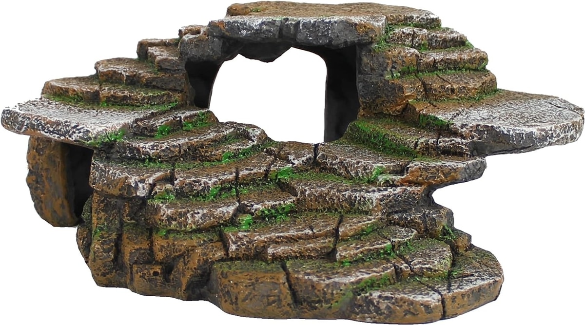 Penn-Plax Reptology's Shale Scape Step Ledges & Cave Hideouts enhance pet habitats with detailed rock formations. These natural-looking structures provide hiding, climbing, and exploring opportunities, reducing stress and boredom for your pet.