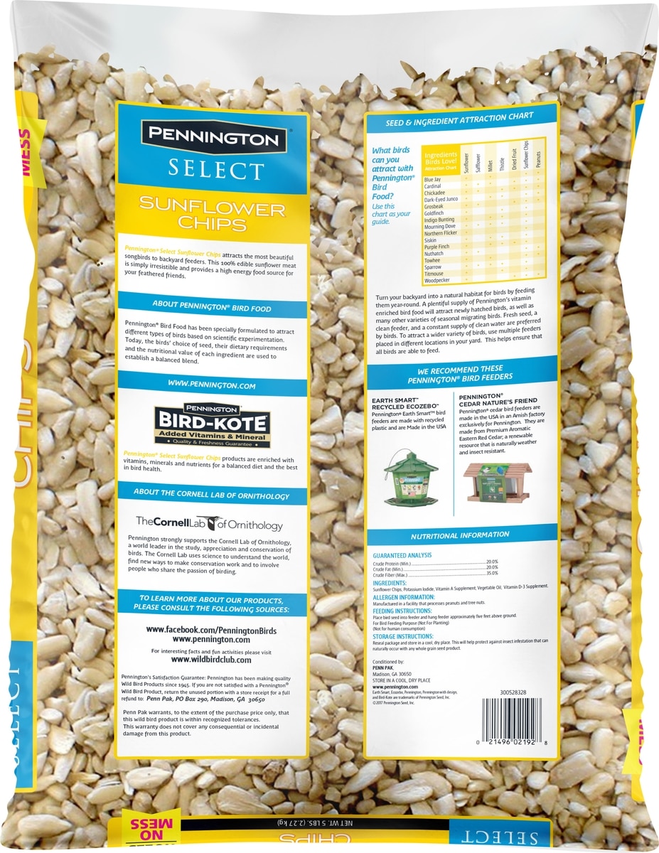 Pennington Select Sunflower Chips Wild Bird Food, 5-lb bag