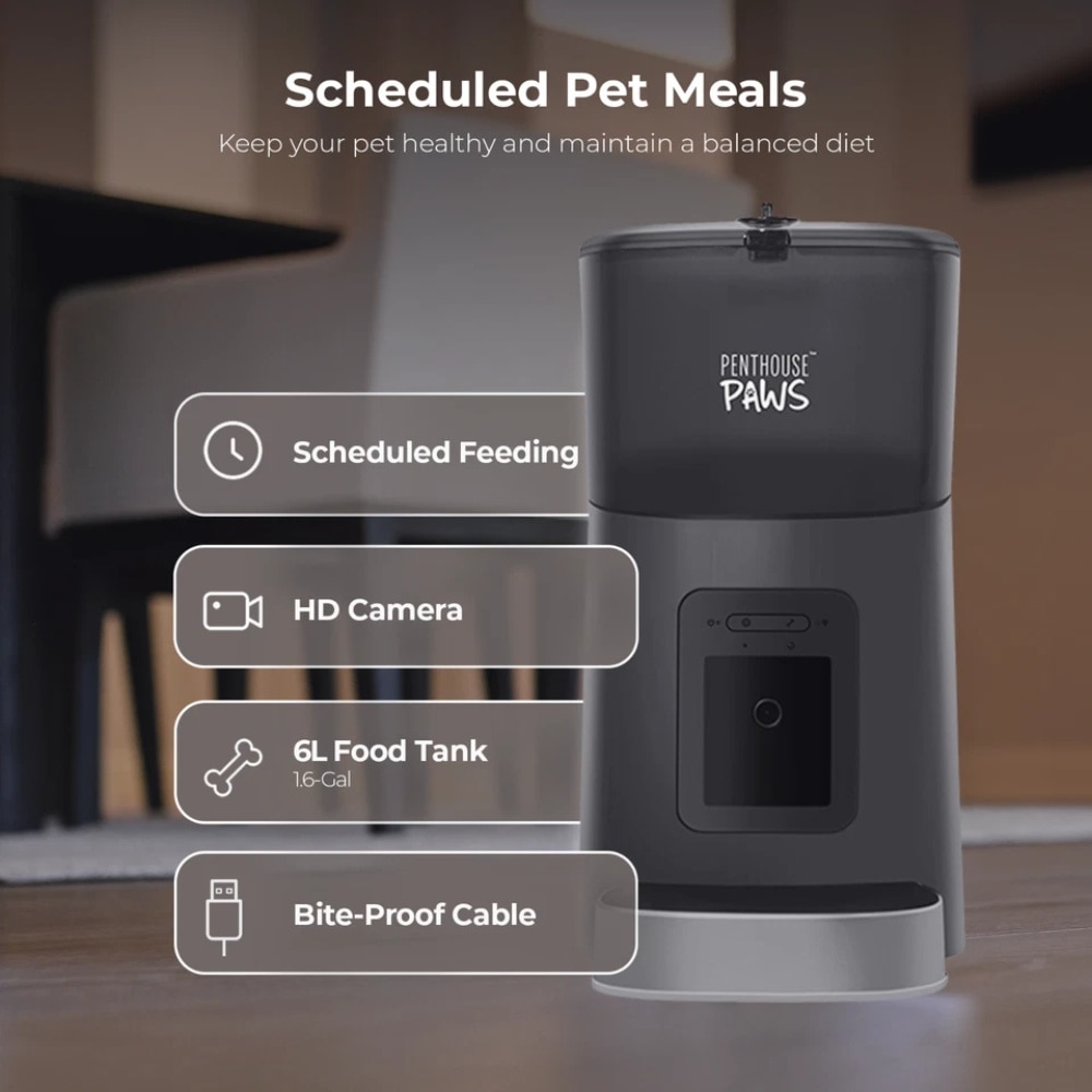 Penthouse Paws Smart HD Automatic Dog & Cat Feeder, Black/Stainless Steel