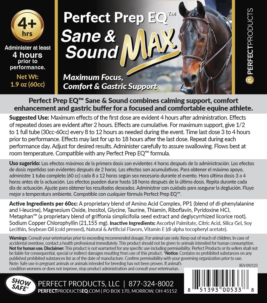 Perfect Products Perfect Prep EQ Sane & Sound MAX Paste Horse Supplement, single tube