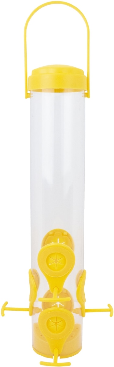 The finches love this feeder! The yellow color attracts them, and the multiple feeding stations allow for many birds to enjoy together. A great quality made product!