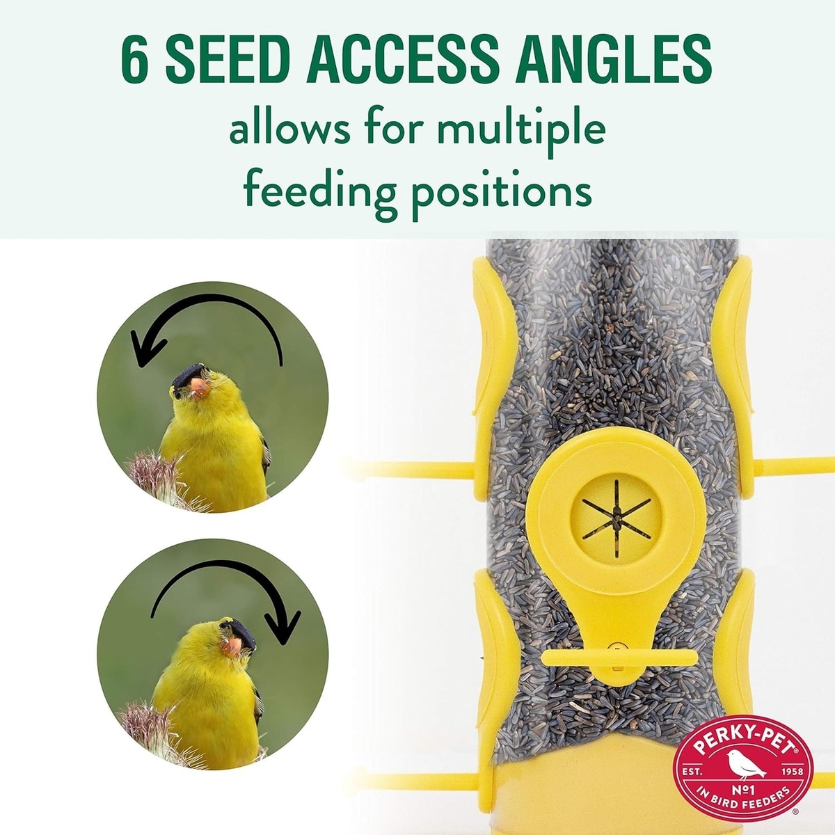 - 6 feeding stations with Flexports prevent seed clogging and allow multiple birds to dine at once.