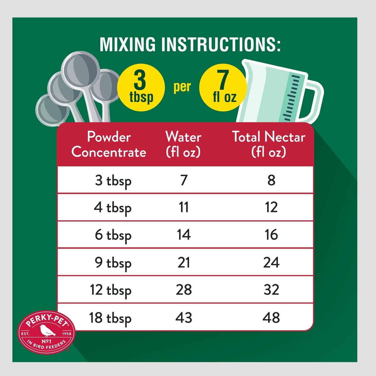 The instructions are to mix 4 teaspoons of nectar concentrate for every 3 fluid ounces of water, until you reach the desired amount of nectar solution.
