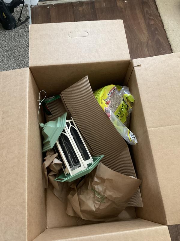 Came in large box with large bag of birdseed, very little packaging and no bubble or air pockets