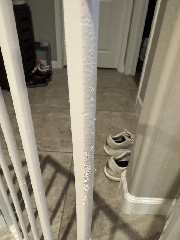 The gate is very poorly made. The wood hasn’t been sanded in areas, and the wood is cracked in spots. It looks like there was one coat of paint applied so you can