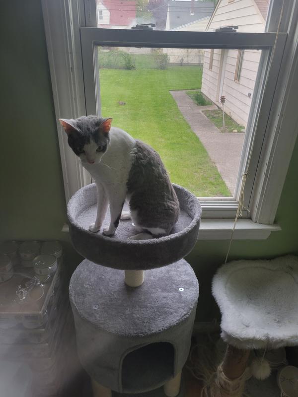 Immediate attraction to their new house! Cats instantly jumped on the tower and battled out of jealousy for the middle covered sleeping section! They love this thing! Easy to put together and easy to maneuver!