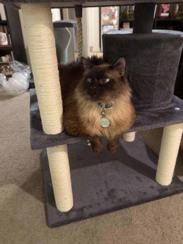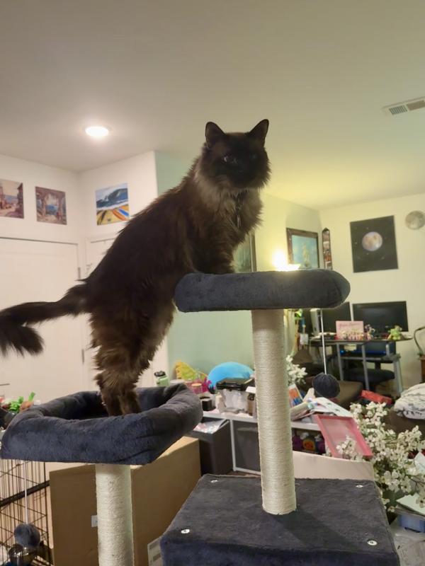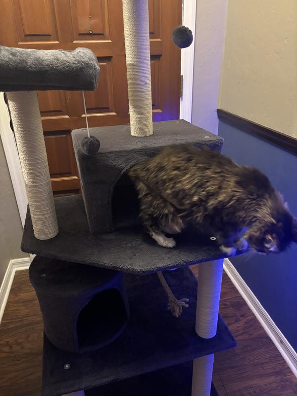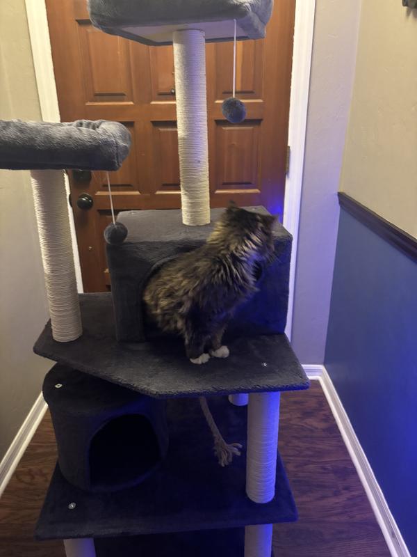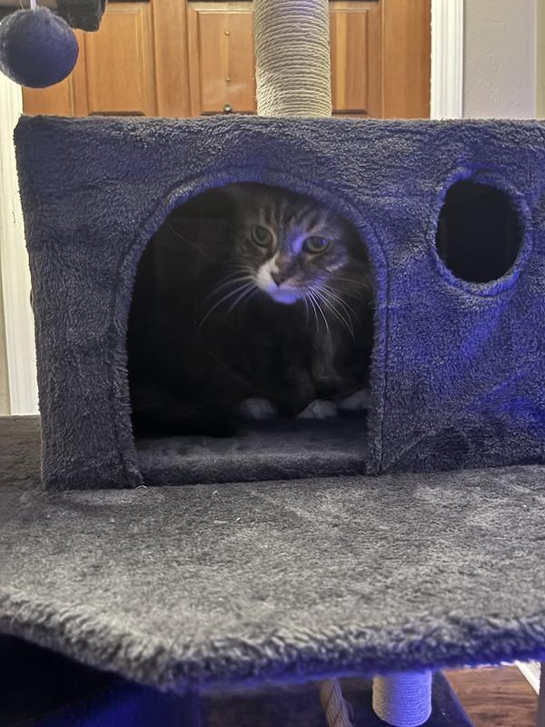 Cats are really enjoying this tree! Bigger than we had & sturdy for all of their shenanigans. They really like resting on it as well. It's their new go to spot!