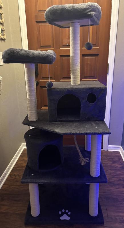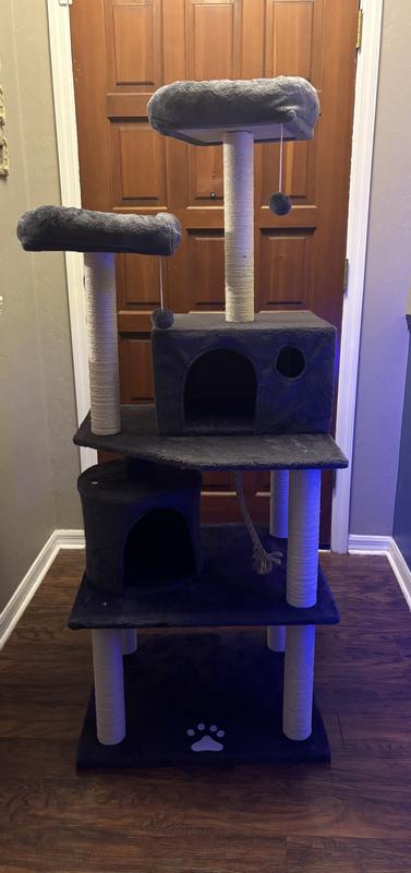 - The 5-tier cat tree will keep multiple cats entertained all day and keep their fur and claws off your furniture.