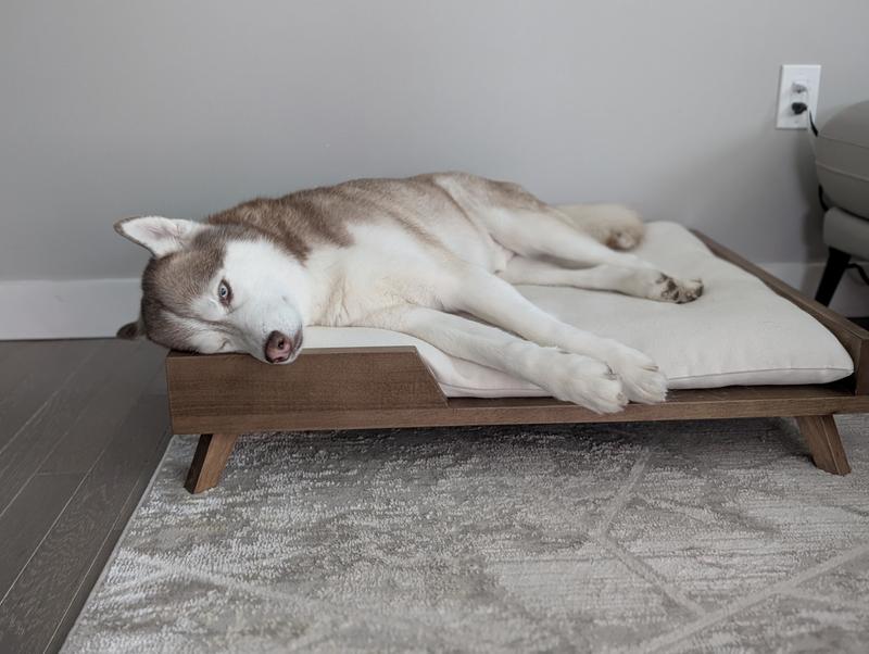 - This stylish dog bed gives your pet a comfortable place to relax indoors.