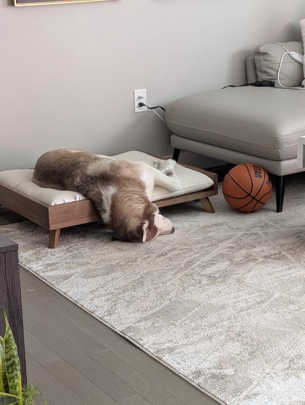 - The minimalist design and natural rubber wood material of this dog bed won’t compromise your home’s aesthetic.