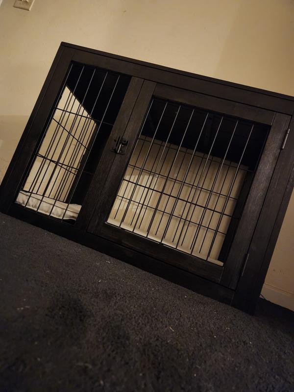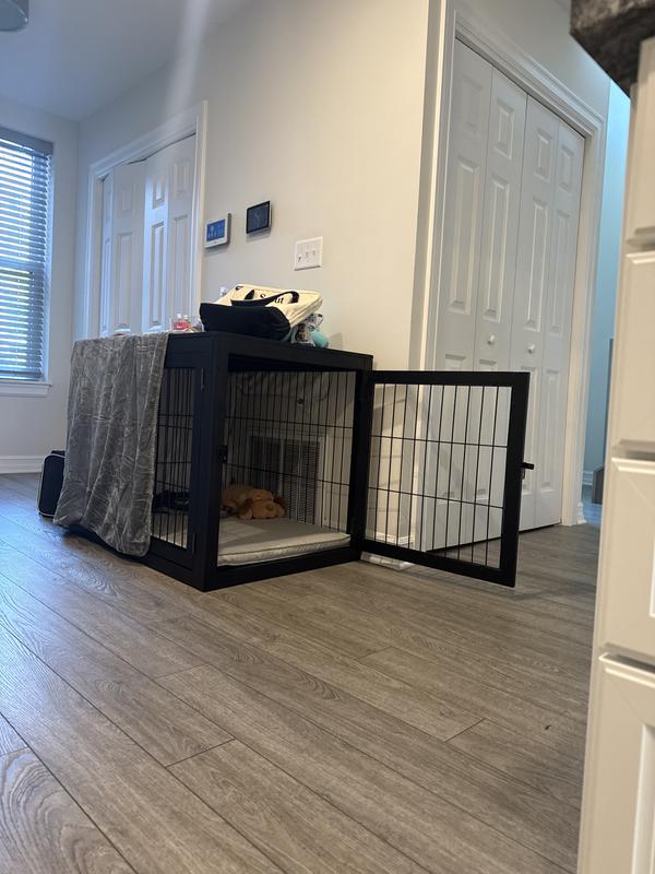 I really dislike leaving bad reviews, but if I save someone from experiencing my troubles, then great. 1 star because it looks nice, but that's the only positive. Top and bottom arrived warped beyond use; the top so bad that it was split lengthwise down the middle before I unpacked it. I've no issue tweaking things to fit, but this needed planing, sanding, and re-drilling of holes. Beyond horrible. My big problem was, I needed to use this immediately so had to just tough it out. The result? My new dog absolutely hated it, and wasn't shy about it. We switched her to an FXW Homeplus Indoor Dog Playpen that another dog uses, and she was happy as a clam. But none of our animals will use this new crate. Regretful purchase.