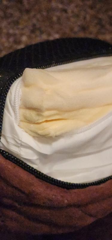 This is an awful pad. The mattress cover and liner are both sized for a 3-4" pad. The pad is only 1". It also appears stained in an area. The inside liner was found