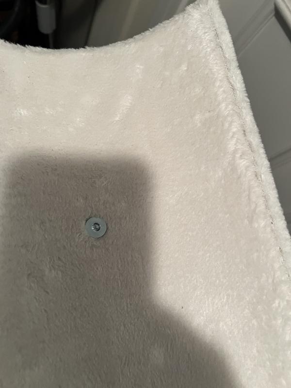 I waited a bit before reviewing to give a good review. This has 5 screws and a screwdriver included. Was the easiest thing to put together- (if you can keep your cat out of it long enough to turn it over). I had it together within 5 min (with the kitty help). He loves it. It is his morning play toy because of the scratching poles and the hanging balls. He finds it when he’s ready to play. I do encourage him to use it with another toy to lure him to it at times. I think he may be a little scared of the top sleeping area but he is very young yet and doesn’t have the longest legs yet. I do put him up there and he’ll sleep there. Just a stretch to get up there by himself. He does get on the lower shelf and sleep. The hanging balls are the best. It is stable and the perfect height for our LR window. The only thing I don’t care for is the fabric piece surrounding the bottom portion is a bit loose as he climbs it. I wish it was tacked down somewhat.