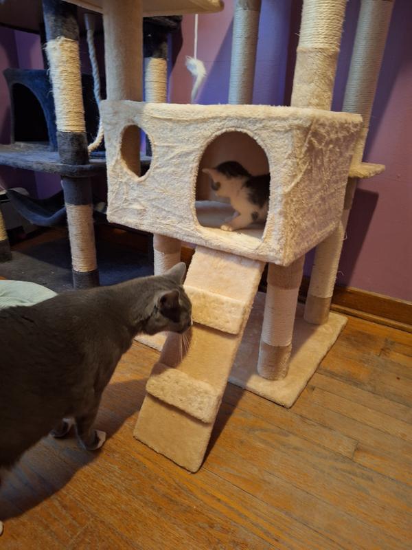 My cats really love this tower! My only complaint is that the little "ramp" at the bottom doesn't really connect securely, so we just don't even bother using it