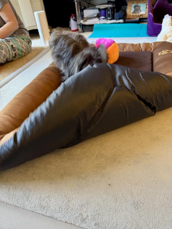 I got the Pet Adobe Plush Cozy Covered Dog Bed in Tan, hoping my dogs would love it. Unfortunately, they haven't gotten a chance to try it out yet. However, my cats have claimed it as their own! They absolutely love it and can't get enough of it. The plush material is super soft, and it seems very durable. So, while I can't speak to how well it works for dogs, it's definitely a hit with the feline crowd!