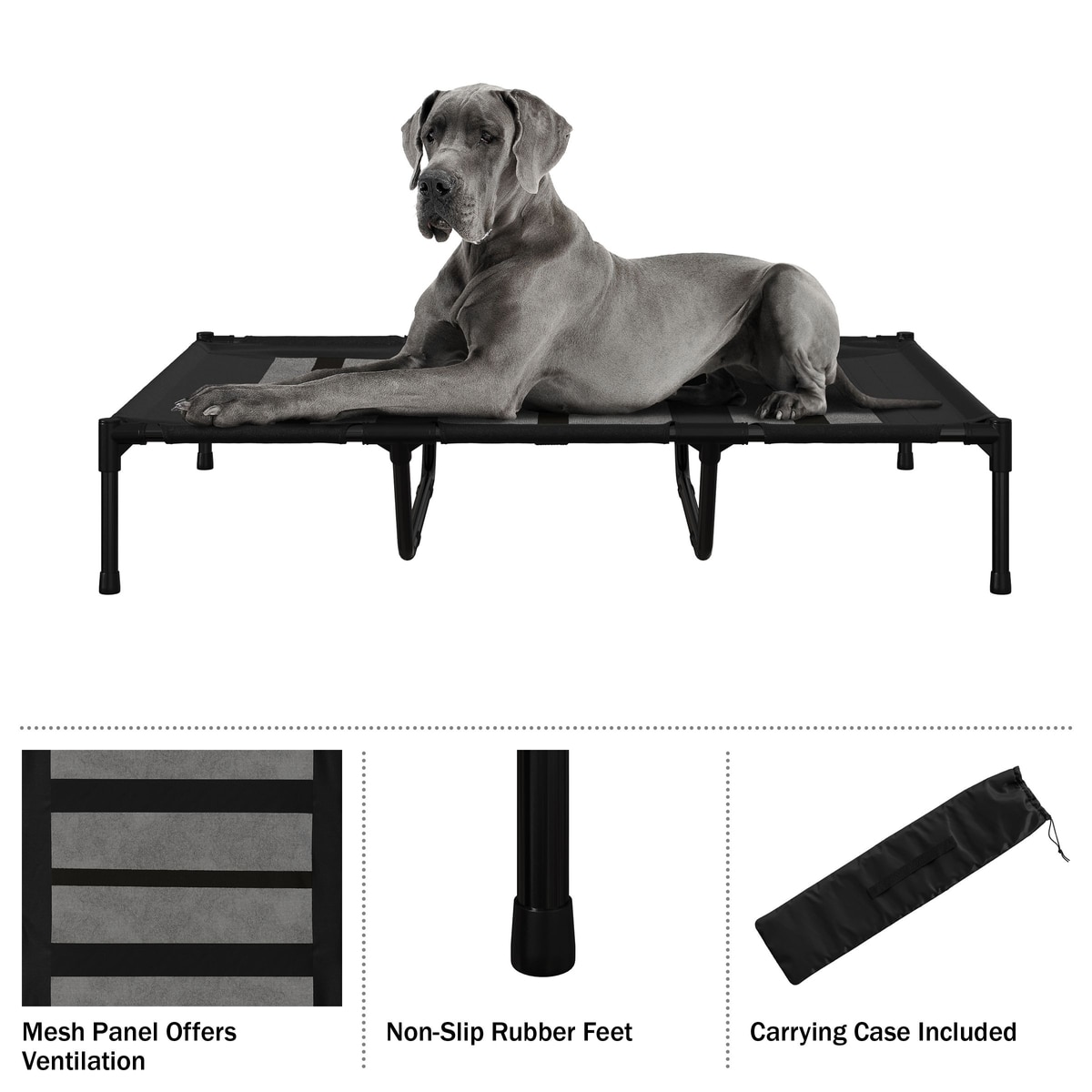 Pet Adobe Portable Indoor & Outdoor Elevated Dog & Cat Bed, Black, X-Large
